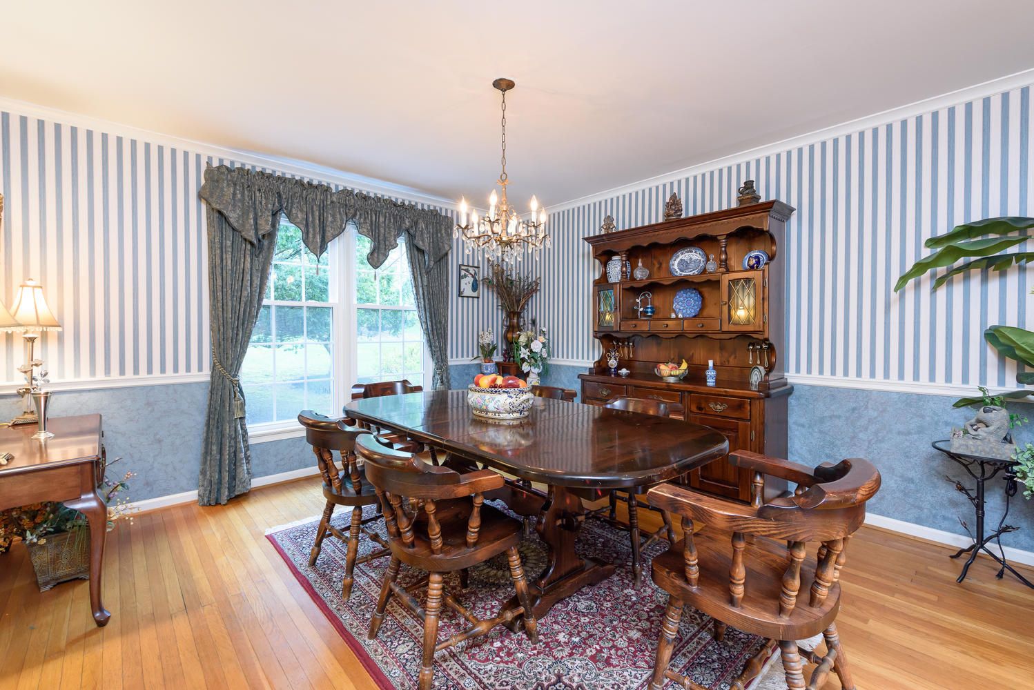 A custom fireplace with marble surround and crown molding highlights the large formal living room. The dining room has crown molding, chair rail and built-in china cabinet. The family room opposite the living room has a cozy brick raised hearth fireplace with wooden mantle to take the chill out of any cold winter night. You will love having a large kitchen that spans across almost the entire back of the home. You can delight in looking out into your large brick patio and gorgeous backyard through the windowed doors of the kitchen dining area.